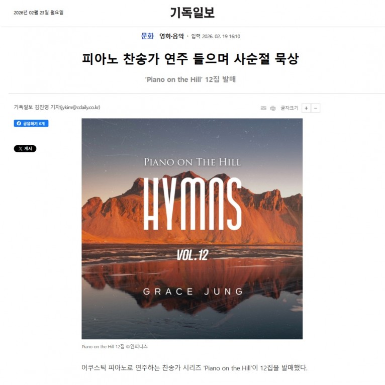 뮤직타임 [기사] 피아노 찬송가 연주 들으며 사순절 묵상(기독일보)